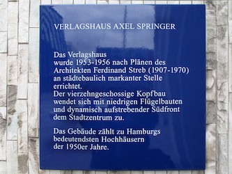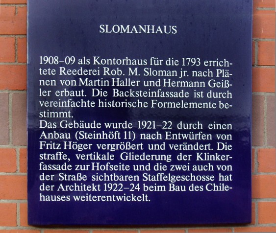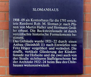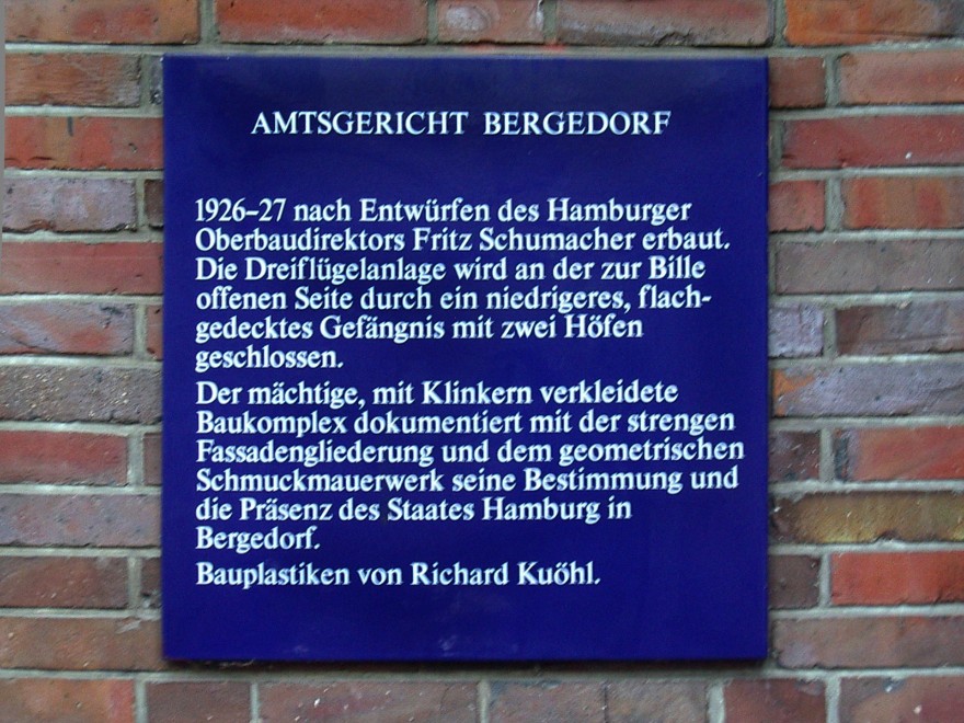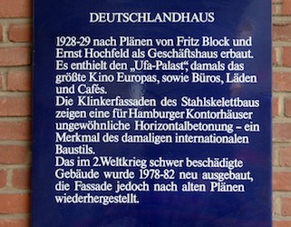 "Blaue Tafeln", auf denen Erläuterungen zur Architektur