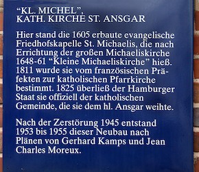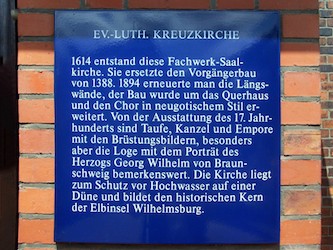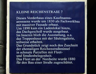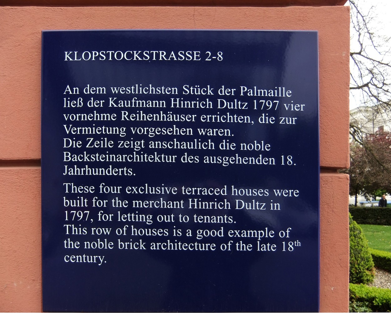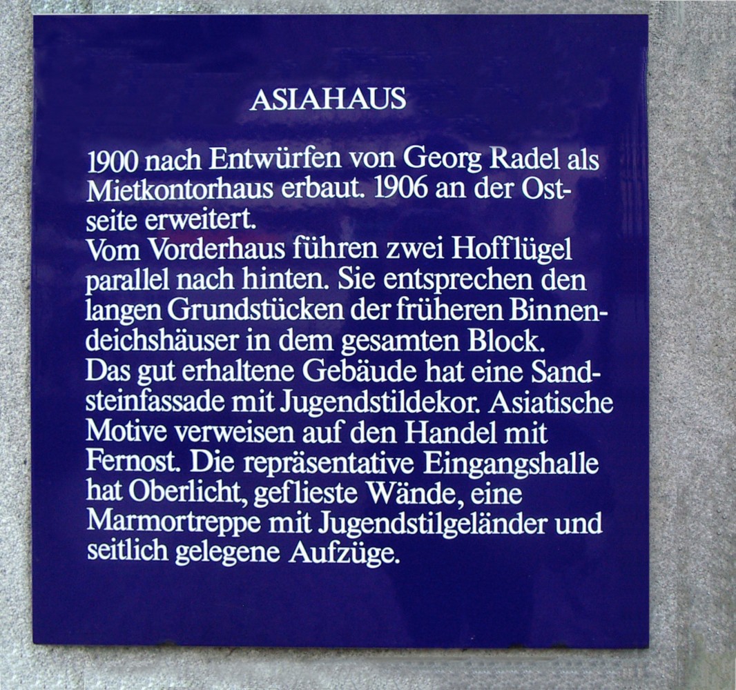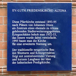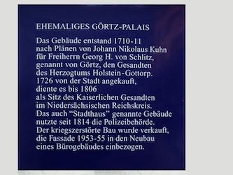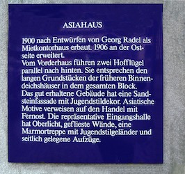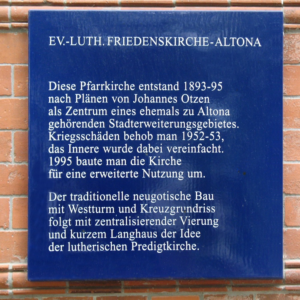 "Blaue Tafeln", auf denen Erläuterungen zur Architektur