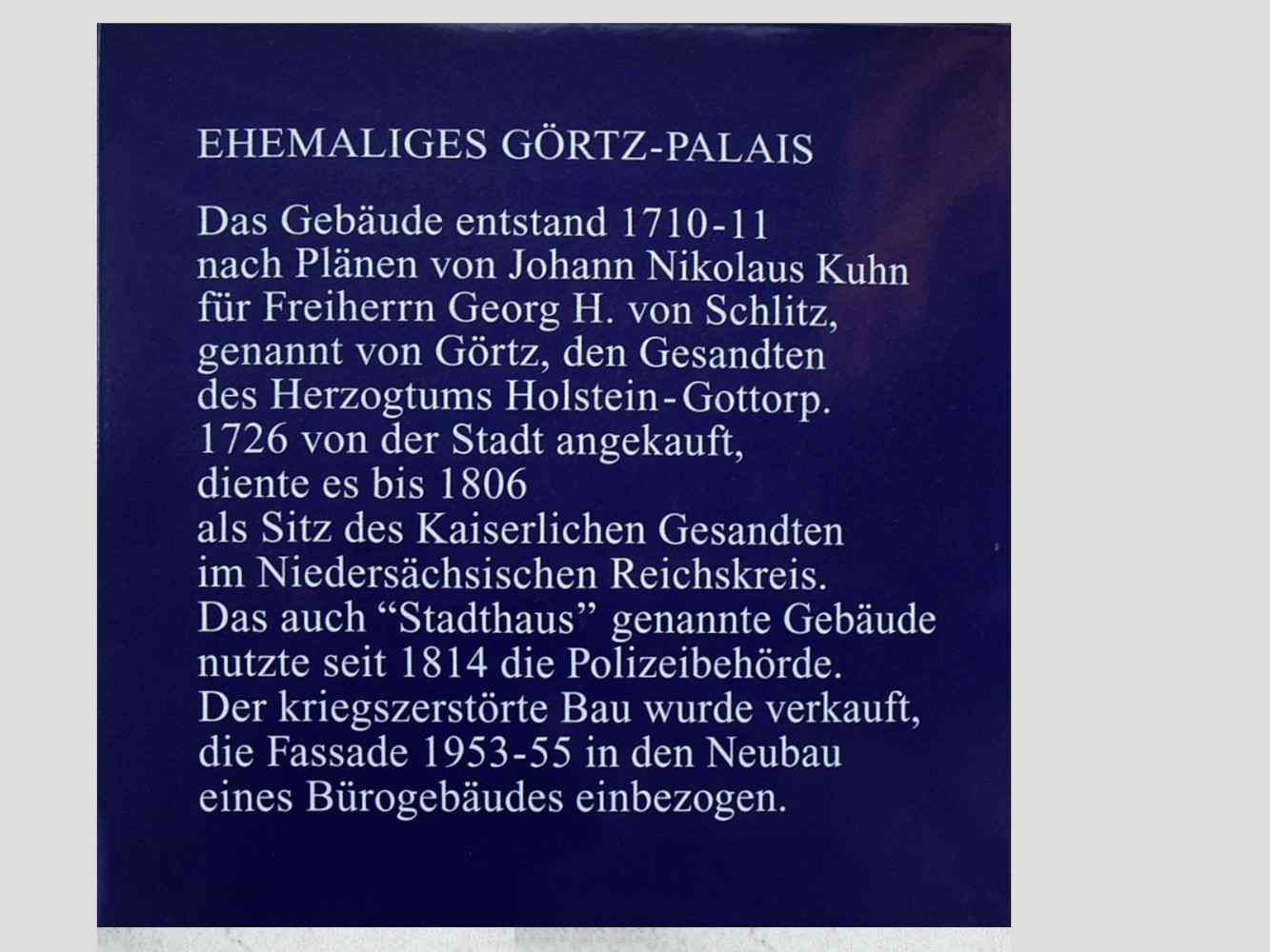 Auf dieser Seite sollen in kleiner Auswahl Abbildungen (von zunächst nur einigen) dieser Tafeln sowie Fotos der zugehörigen Gebäude gezeigt werden.