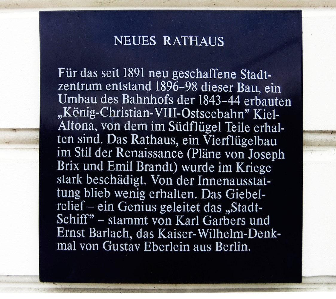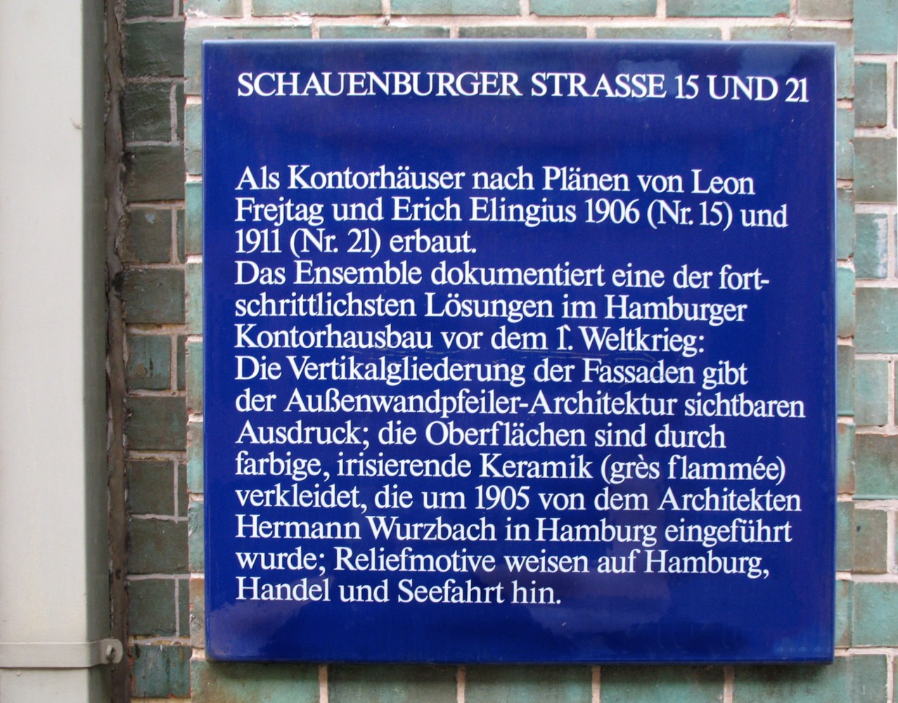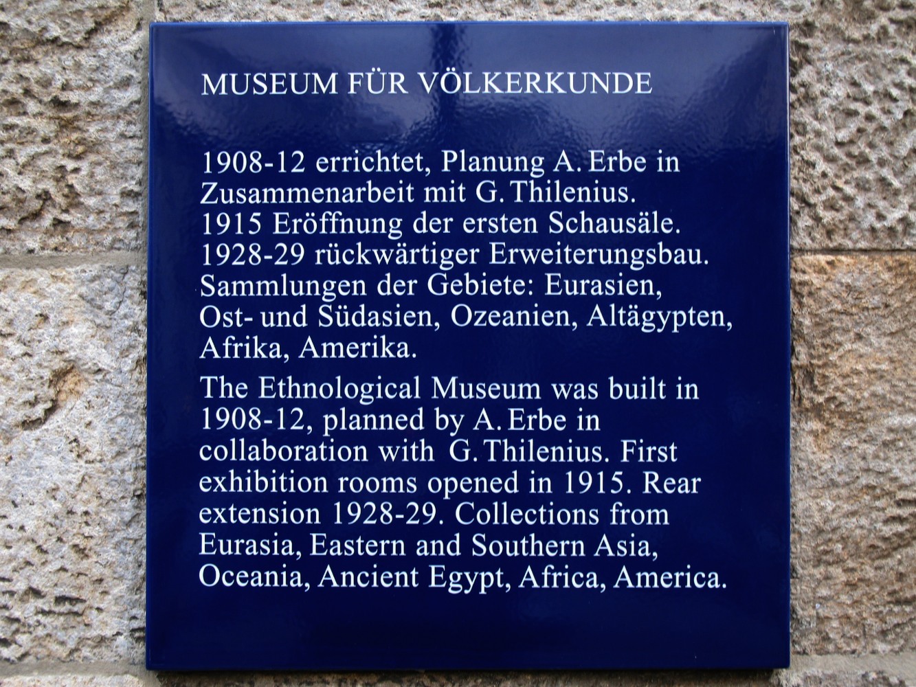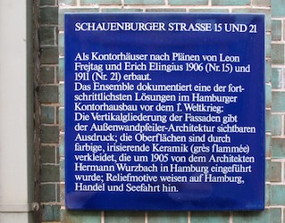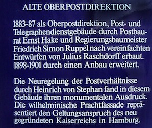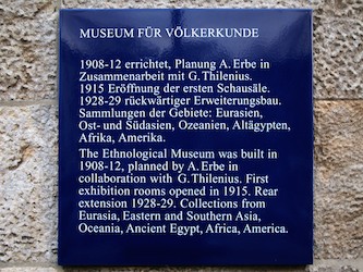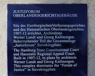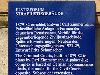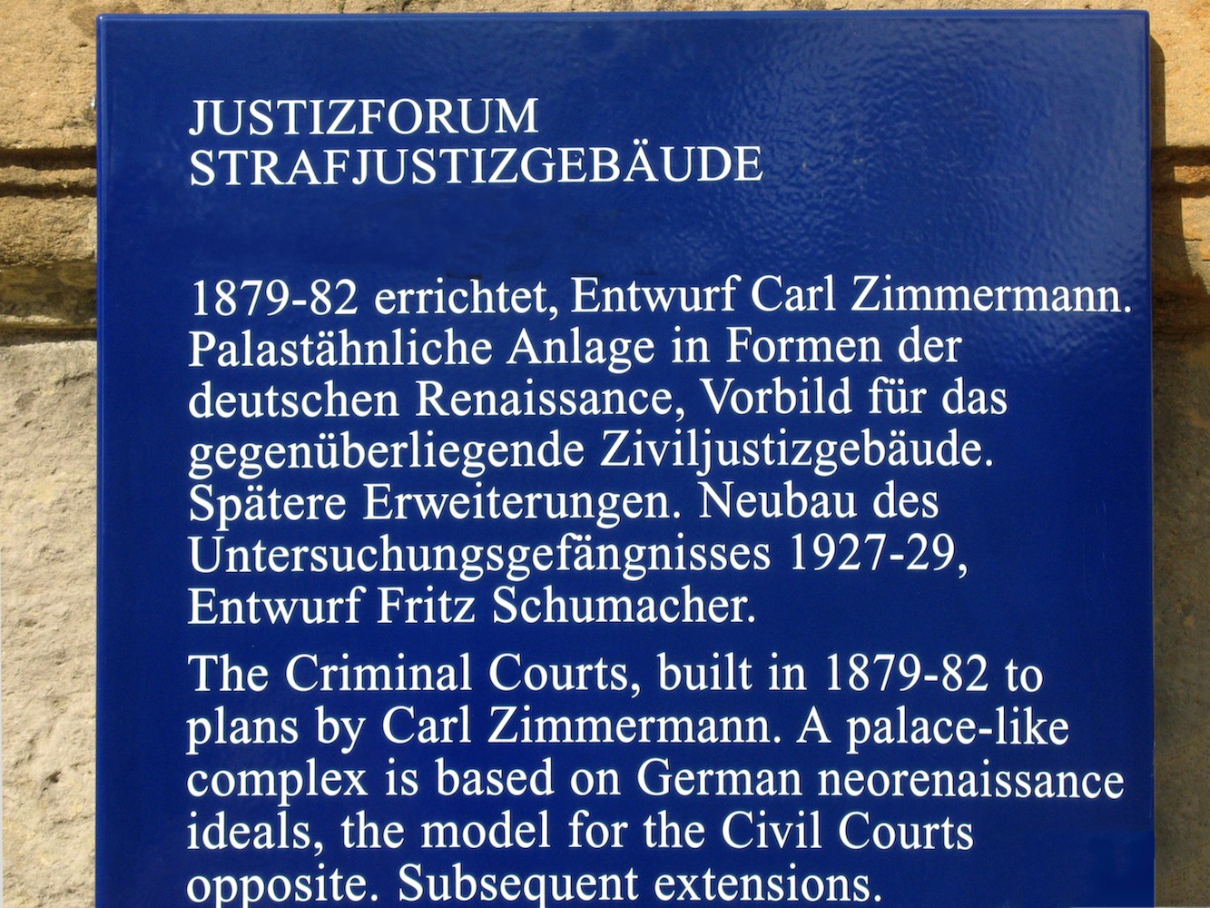"Blaue Tafeln", auf denen Erläuterungen zur Architektur