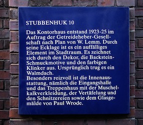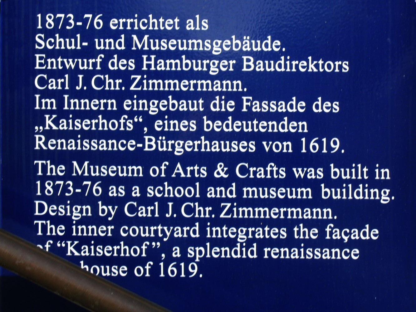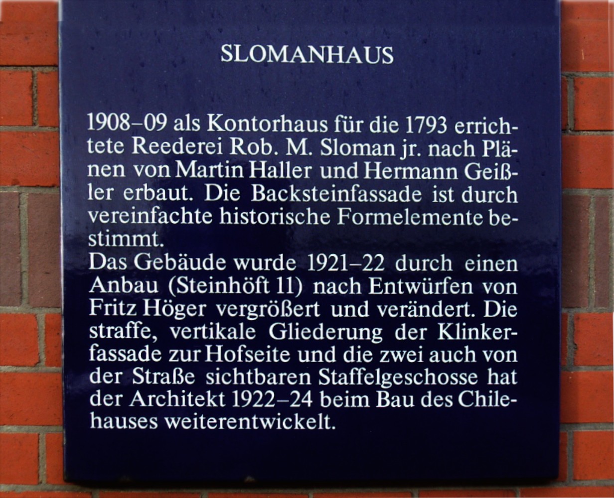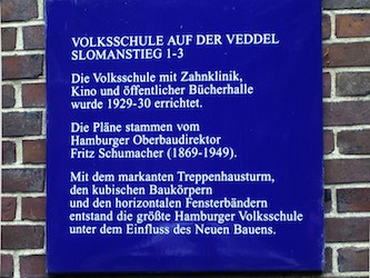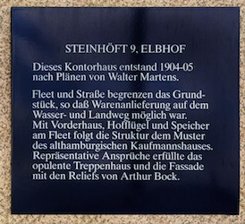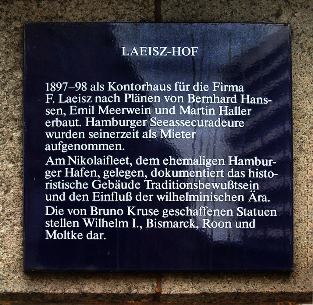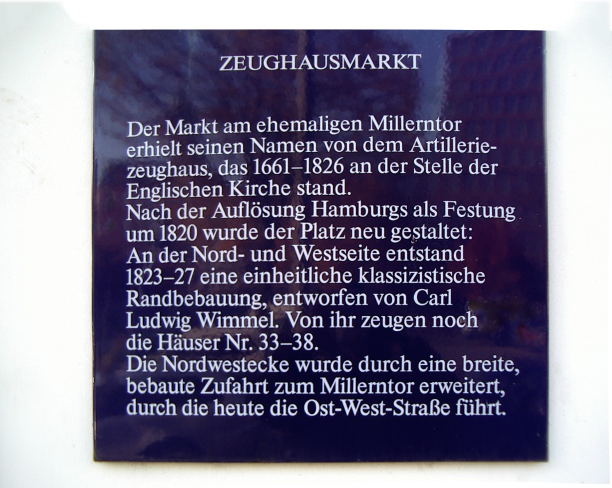 "Blaue Tafeln", auf denen Erläuterungen zur Architektur