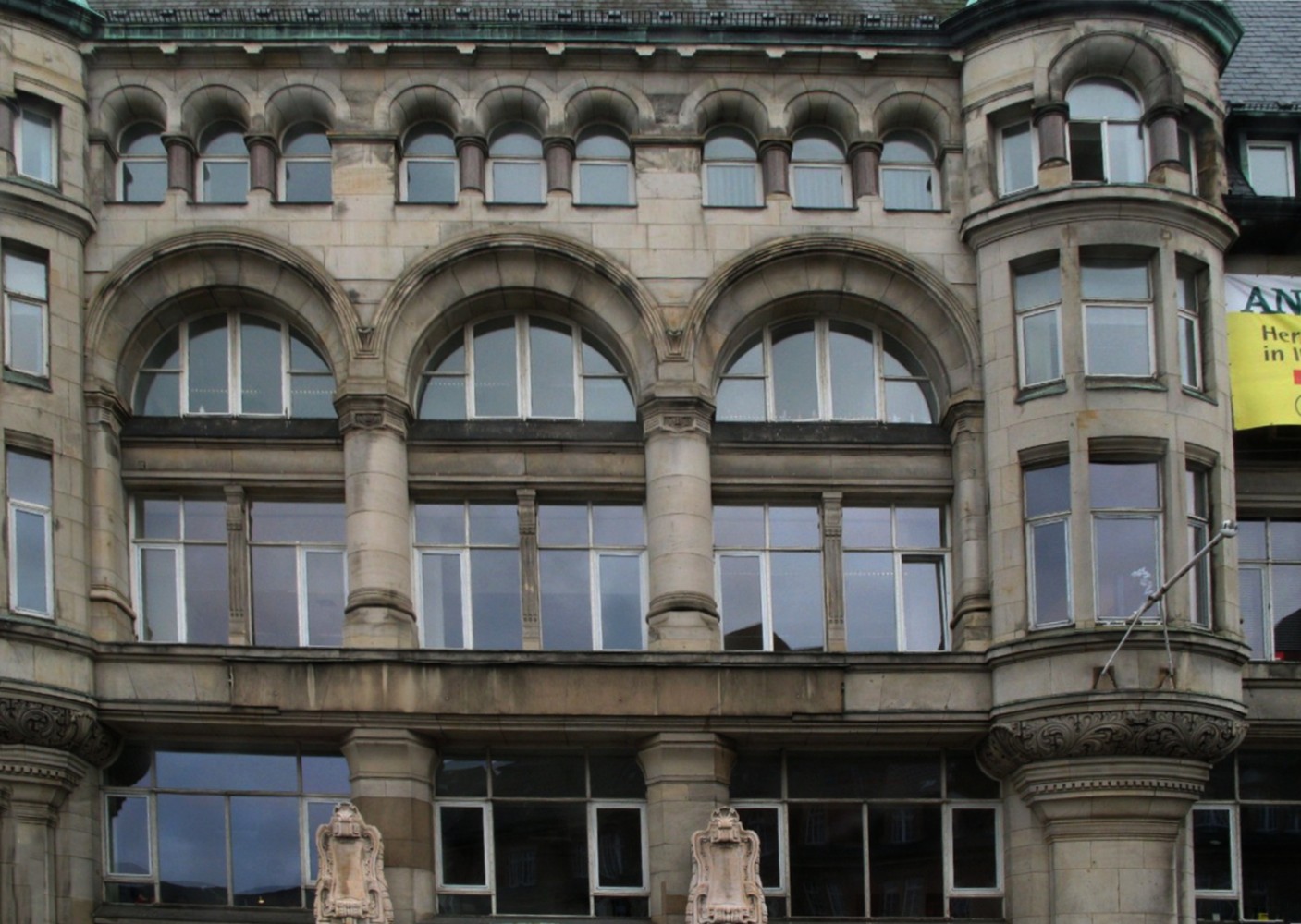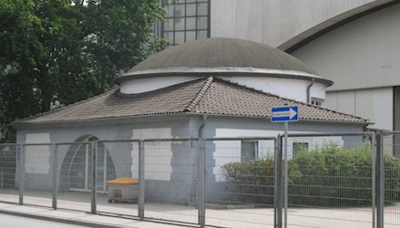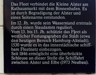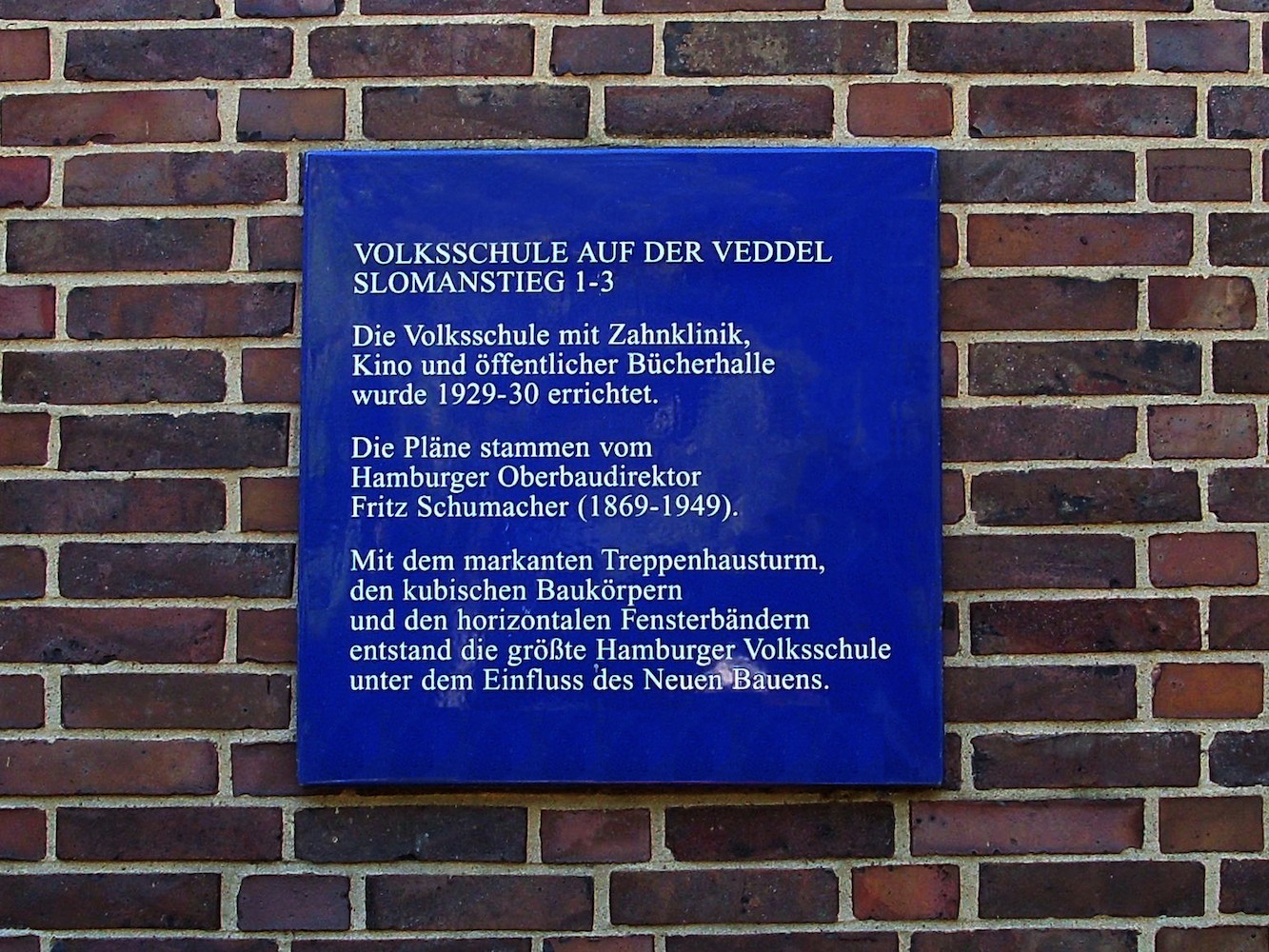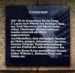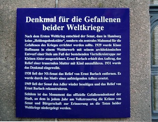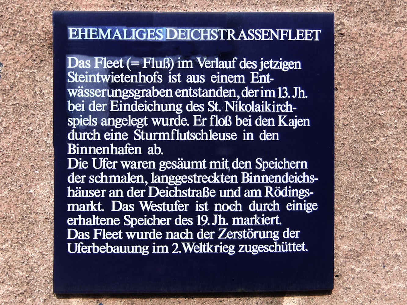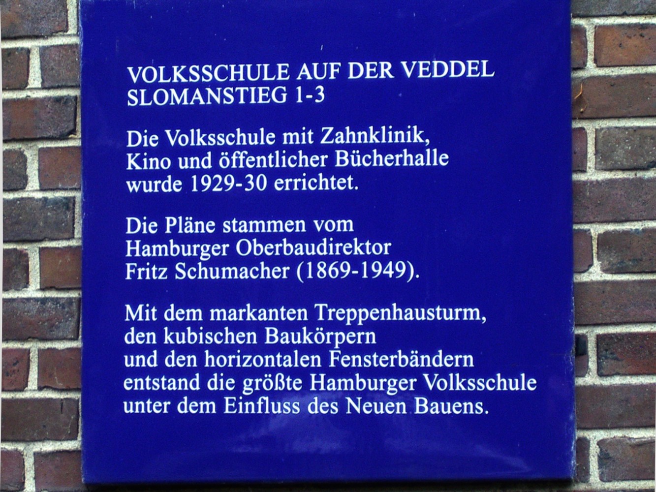 "Blaue Tafeln", auf denen Erläuterungen zur Architektur